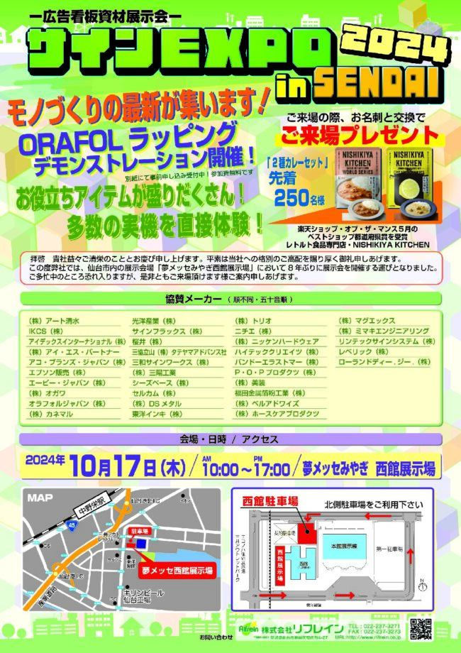 鹿児島県の代理店さんで株式会社久永建装様が主催する内覧会に出展します。 2024年8月22日(木)~8月23日(金) カクイックス交流センター(かごしま県民交流センター) 看板広告資材や建築資材含め、多数の企業様が出展を…